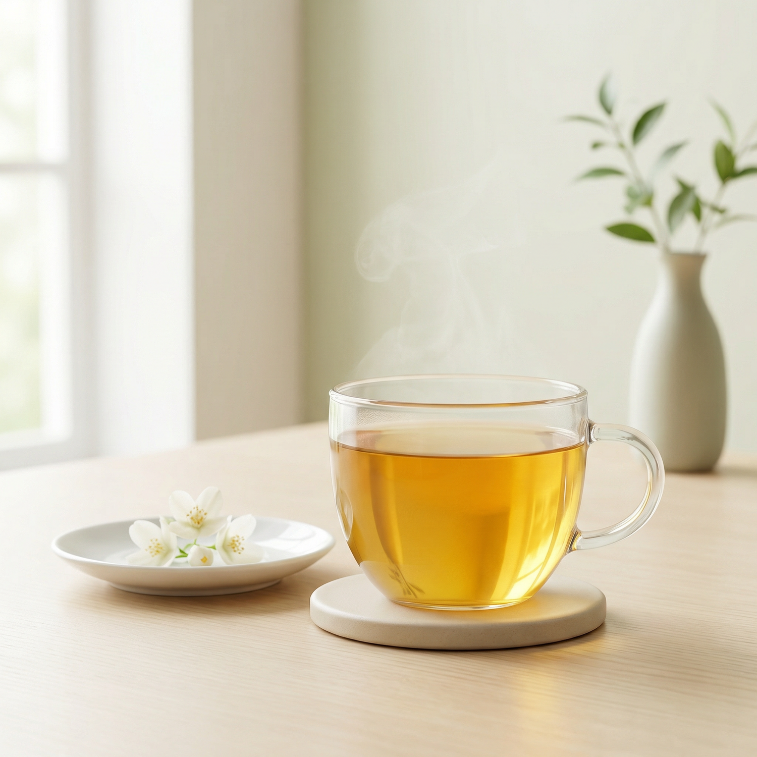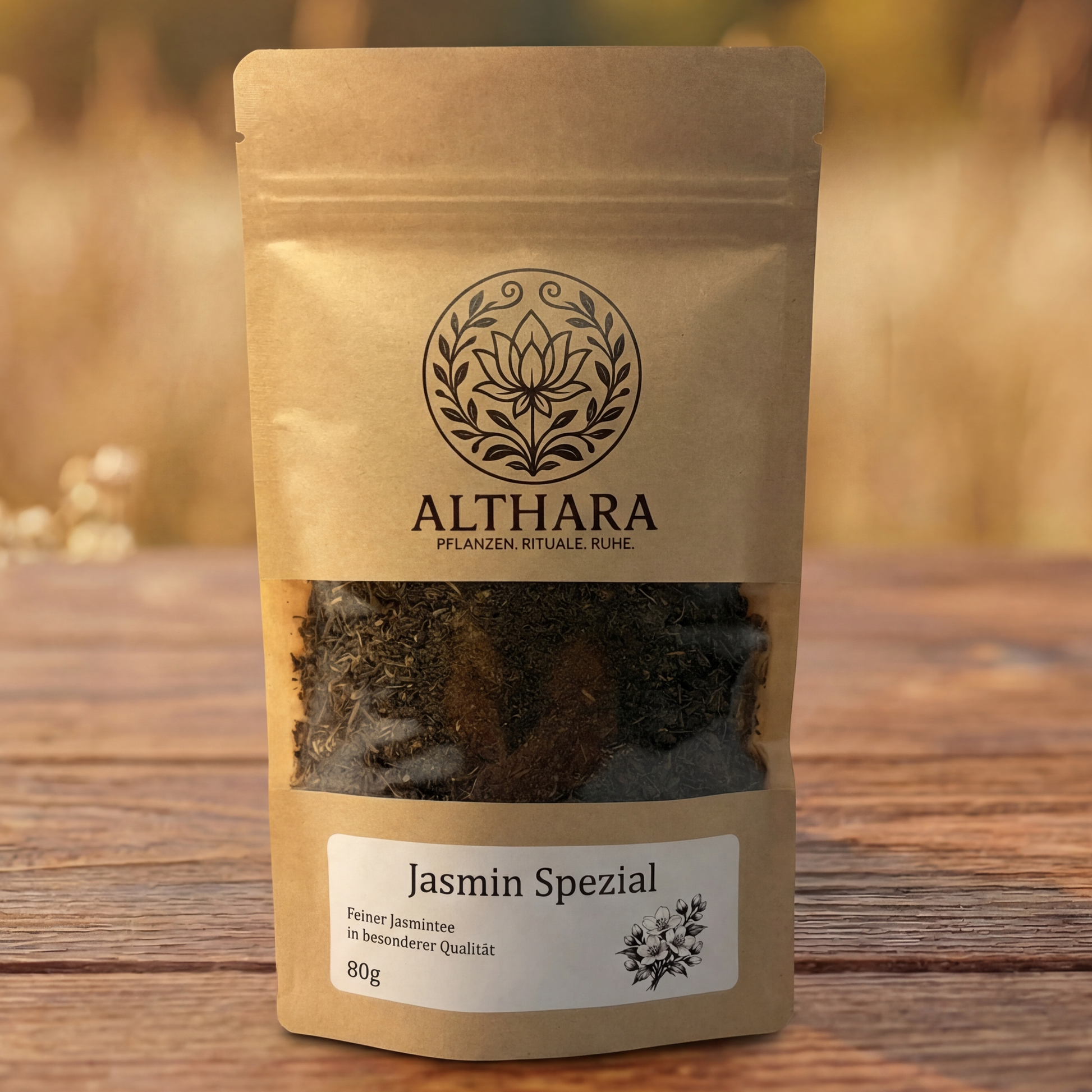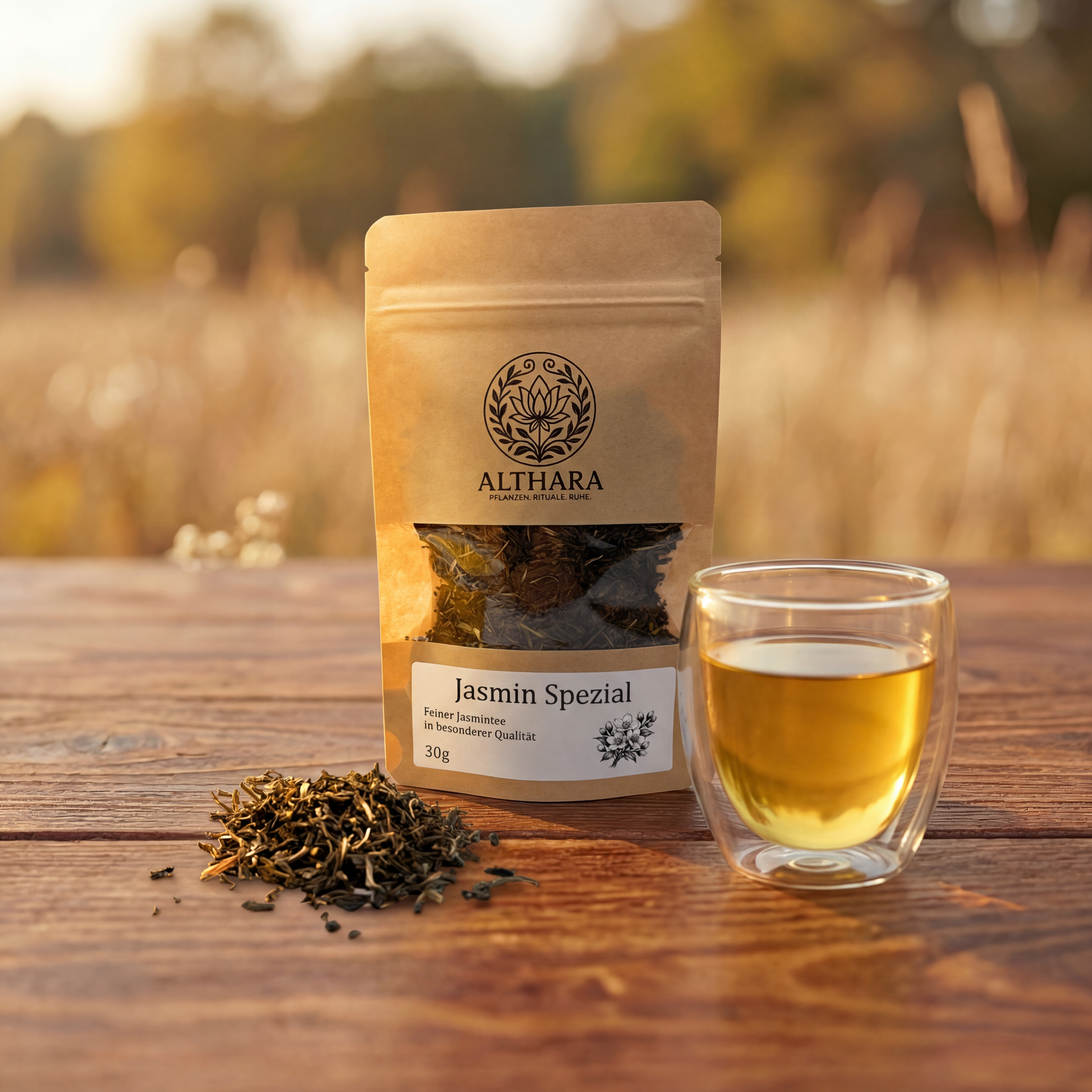 authentische Jasminnote. In der Tasse zeigt er eine klare, goldene Farbe und entfaltet einen lieblichen Duft