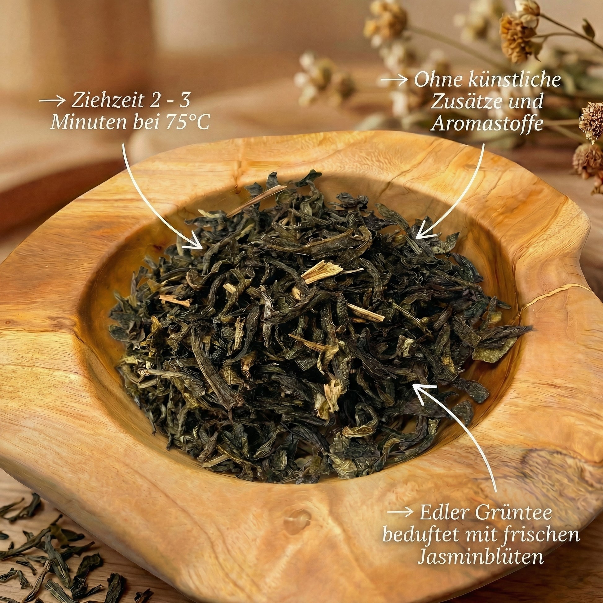 mit blumigem Geschmack. Ein hochwertiger Klassiker für alle, die feine Jasmintees schätzen.